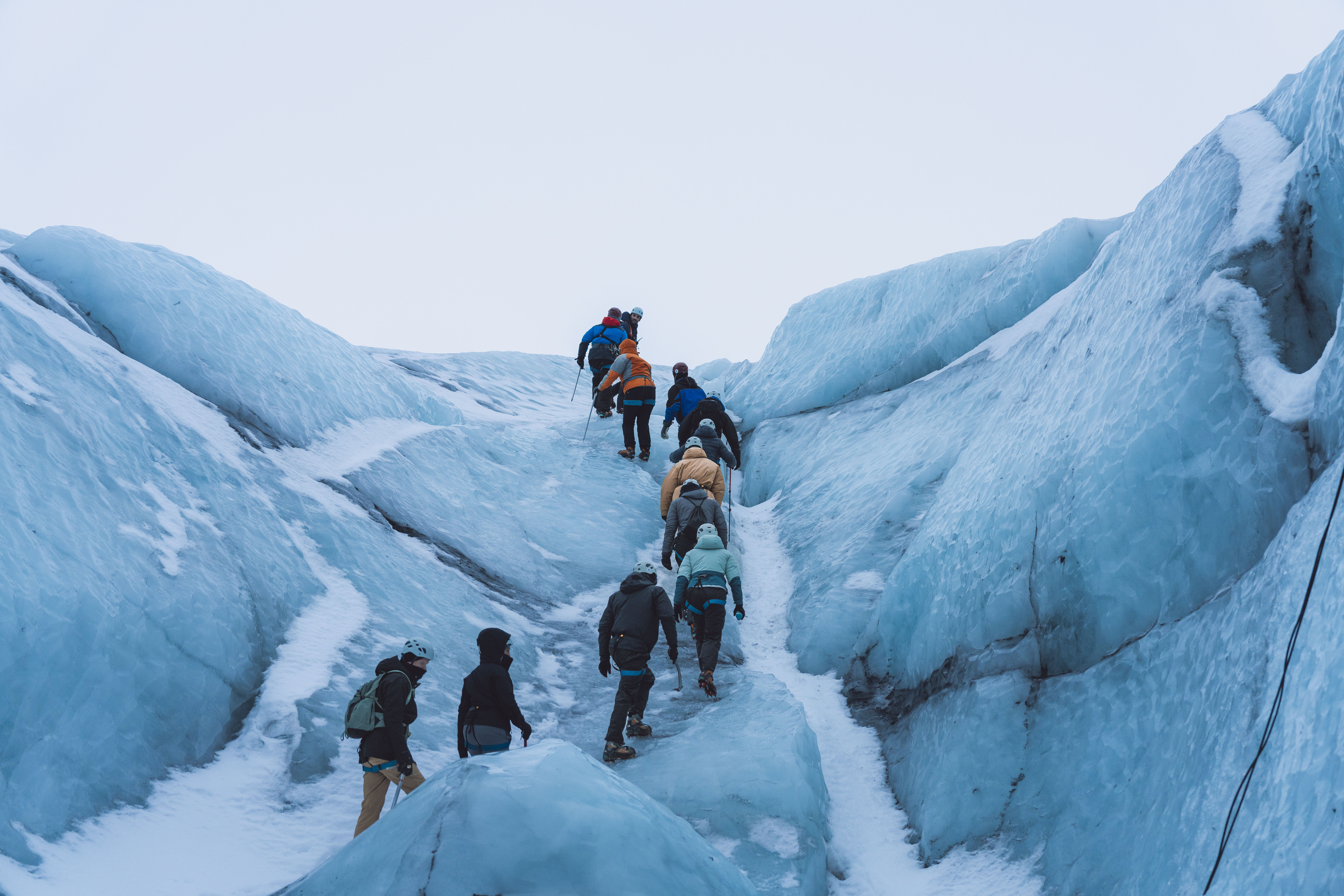 Day 2: We continue our journey towards Jokulsarlon Glacier Lagoon and Diamond Beach. In Skaftafell National park you will meet our certified glacier guides and embark on a glacier hiking and ice caving tour on Falljökull. Ice Caves are only found during the wintertime when the glacial rivers retract and the water freezes and they can look completely different every year.