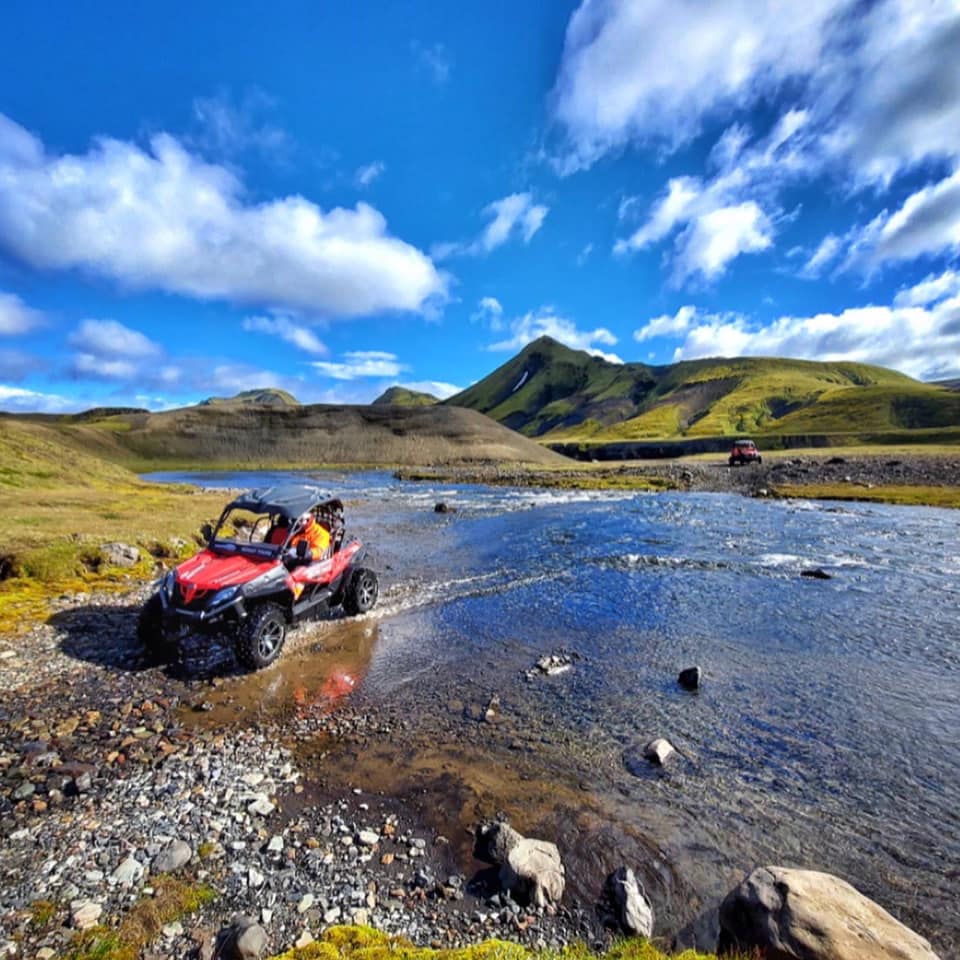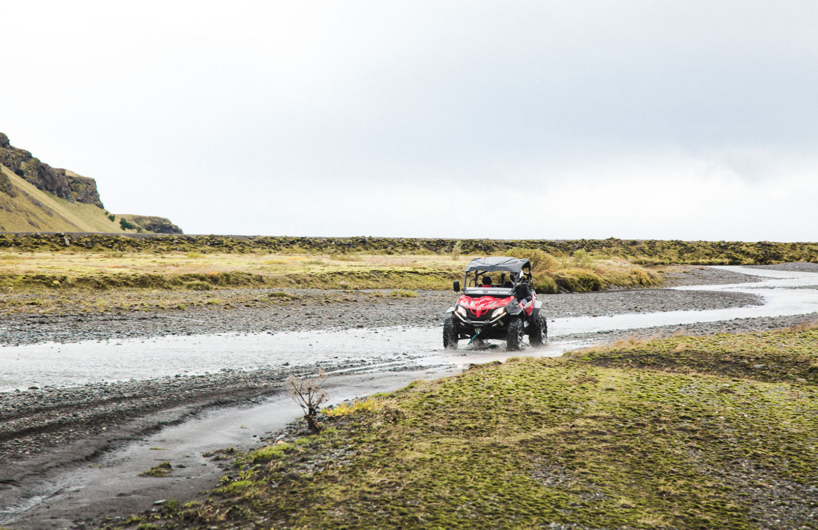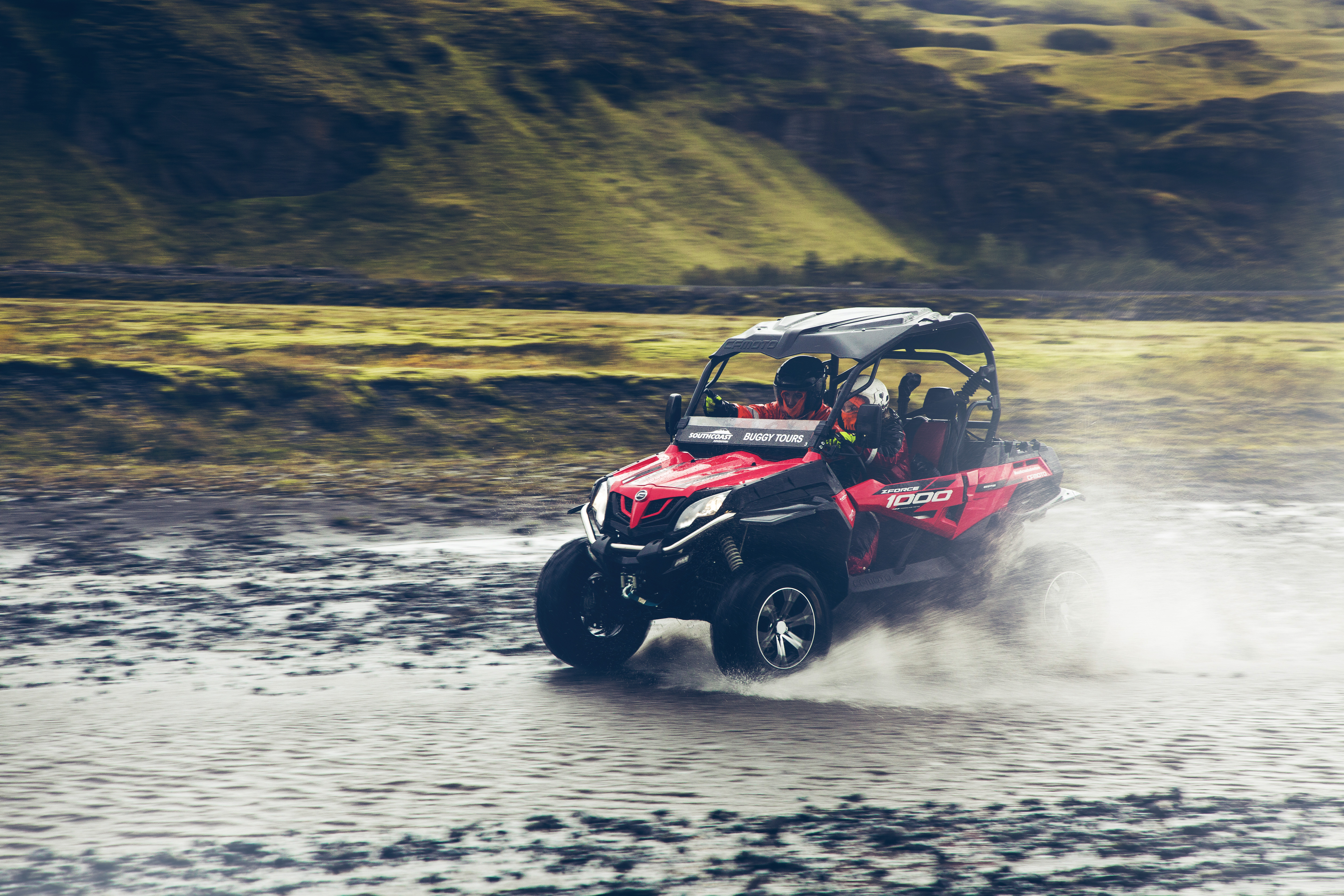 The 1-hour Buggy Tour in Iceland starts from our base, Brú base by Road 249. After a short briefing where your guide will take you through safety procedures, we dress up in a snow/whole suit and helmet and hop onto our buggy ride. This tour is a unique way to enjoy Icelandic nature and covers seeing some of the majestic waterfalls and gravel roads while driving on a buggy. Buggy touring is the newest thing in Icelandic ATV adventures – and the Buggy Tour is your chance to give it a go. These two-person vehicles take you up close to the breathtaking views.
