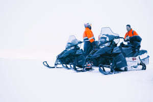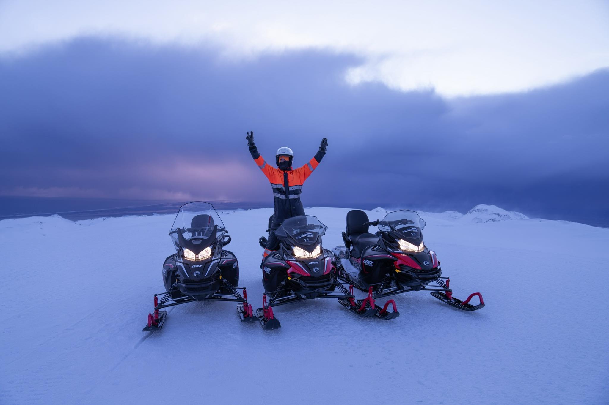 Please note: All drivers must be 17 years of age or older and have a full, valid driver's license. According to Icelandic law, a learner´s permit, tractor, or motorcycle license is not sufficient. Single riders and groups with odd numbers must book a single-ride snowmobile.
