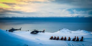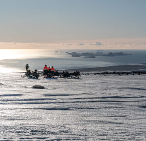 Once there, we’ll climb onto snowmobiles for a heart-pumping experience of Iceland at its absolute best. As soon as we get onto the glacier, prepare to be struck by its size: a pristine expanse of snow dotted with rock formations and majestic ice sculptures.