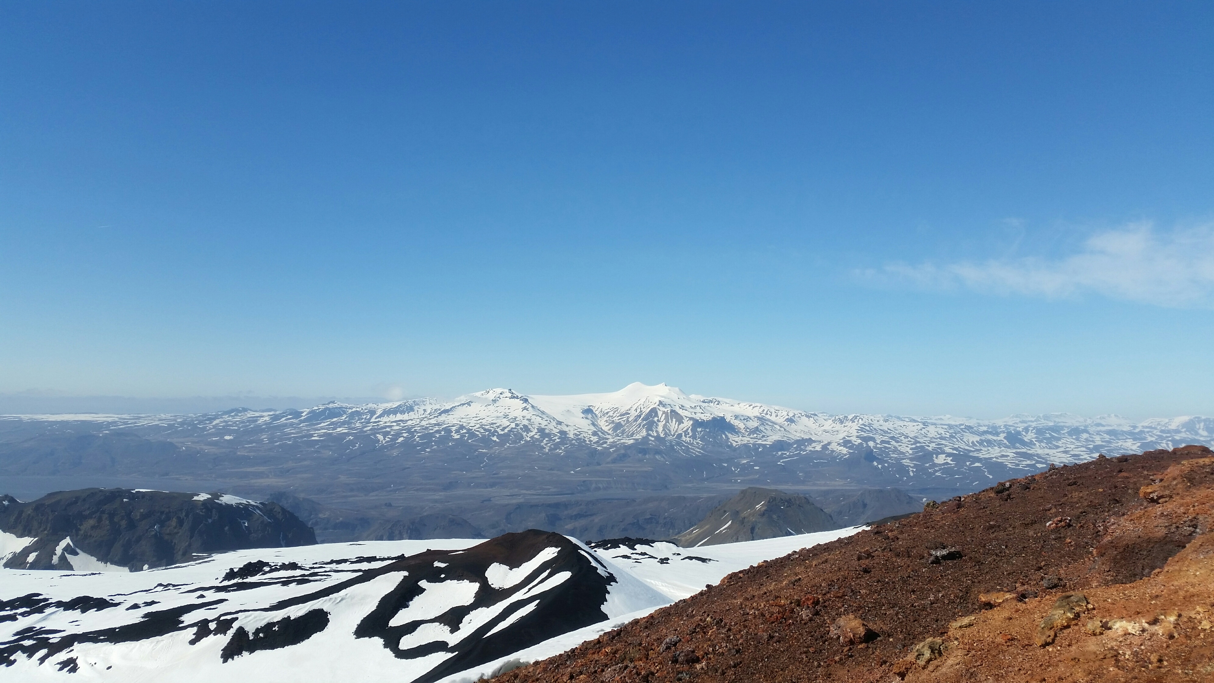 The hike through Fimmvörðuháls, from Skógar to Þórsmörk, is one of Iceland´s best known hiking routes. We will start our day at the 60 m high Skógarfoss waterfall, where we begin our 25 kilometer hike towards Þórsmörk. The trail winds along Skógá River and its many waterfalls, and up between the two Glaciers, Eyjafjallajökull and Mýrdalsjökull. There we will experience the recent lava flow from the 2010 eruption on Fimmvörðuháls and hike on the two volcanic craters – Móði and Magni. From there we will start our decent towards Þórsmörk, where the view can be spectacular. If we are lucky we can see Volcanos, Glaciers, the Highlands and Glacier valleys. Our hike takes us through rough Icelandic landscape and beautiful nature.