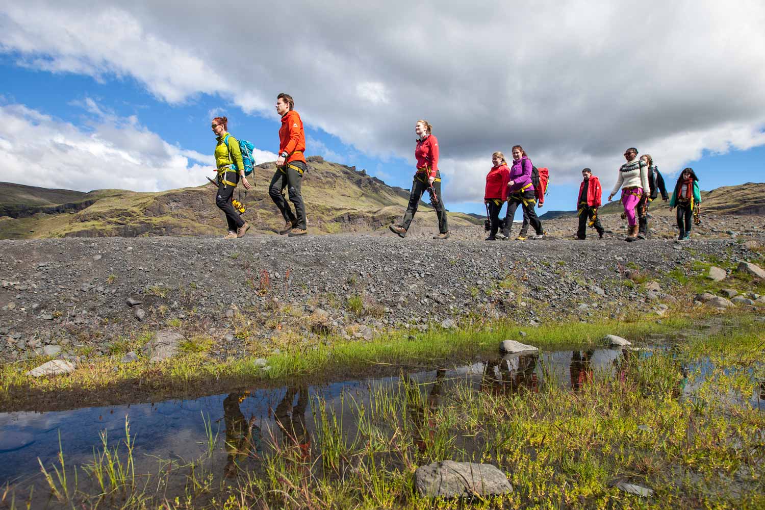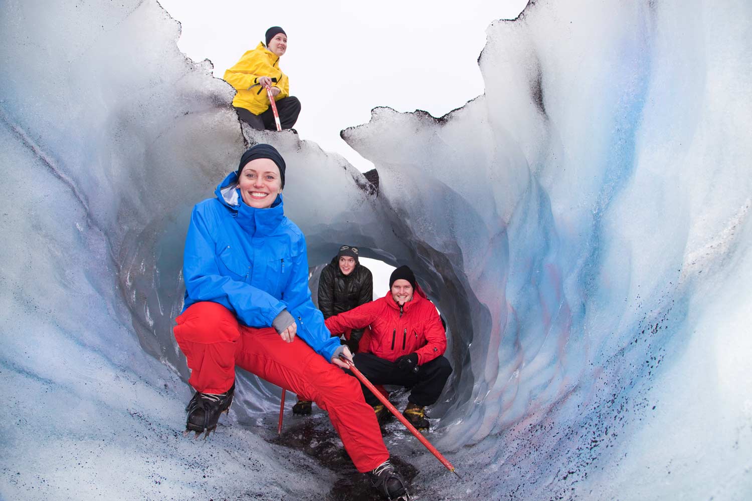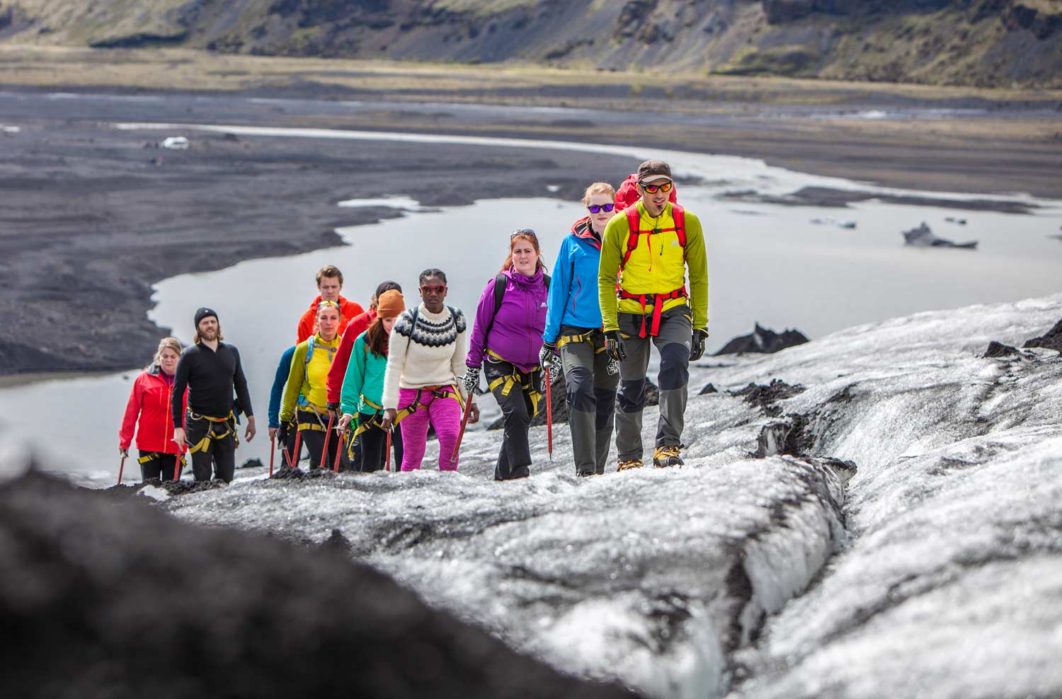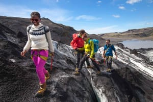 This is an informative, safe and easy glacier walk on the Sólheimajökull glacier tongue. Your certified glacier guide will lead you through a frozen wonderland of different shades of glacier ice; white ice, blue ice, and crystal clear ice. You will get to see deep crevasses and water cauldrons in a safe manner, along with other interesting features of the glacier. During the hike, you will have plenty of photo opportunities and your expert guide will share his wisdom about the ever-changing landscapes of the Icelandic glaciers, their formation and interplay with the surrounding volcanoes and mountains. No technical skills are needed for this tour and you will be provided with all the necessary glacier equipment. This is a great, family-friendly, way to experience the Icelandic glaciers.
