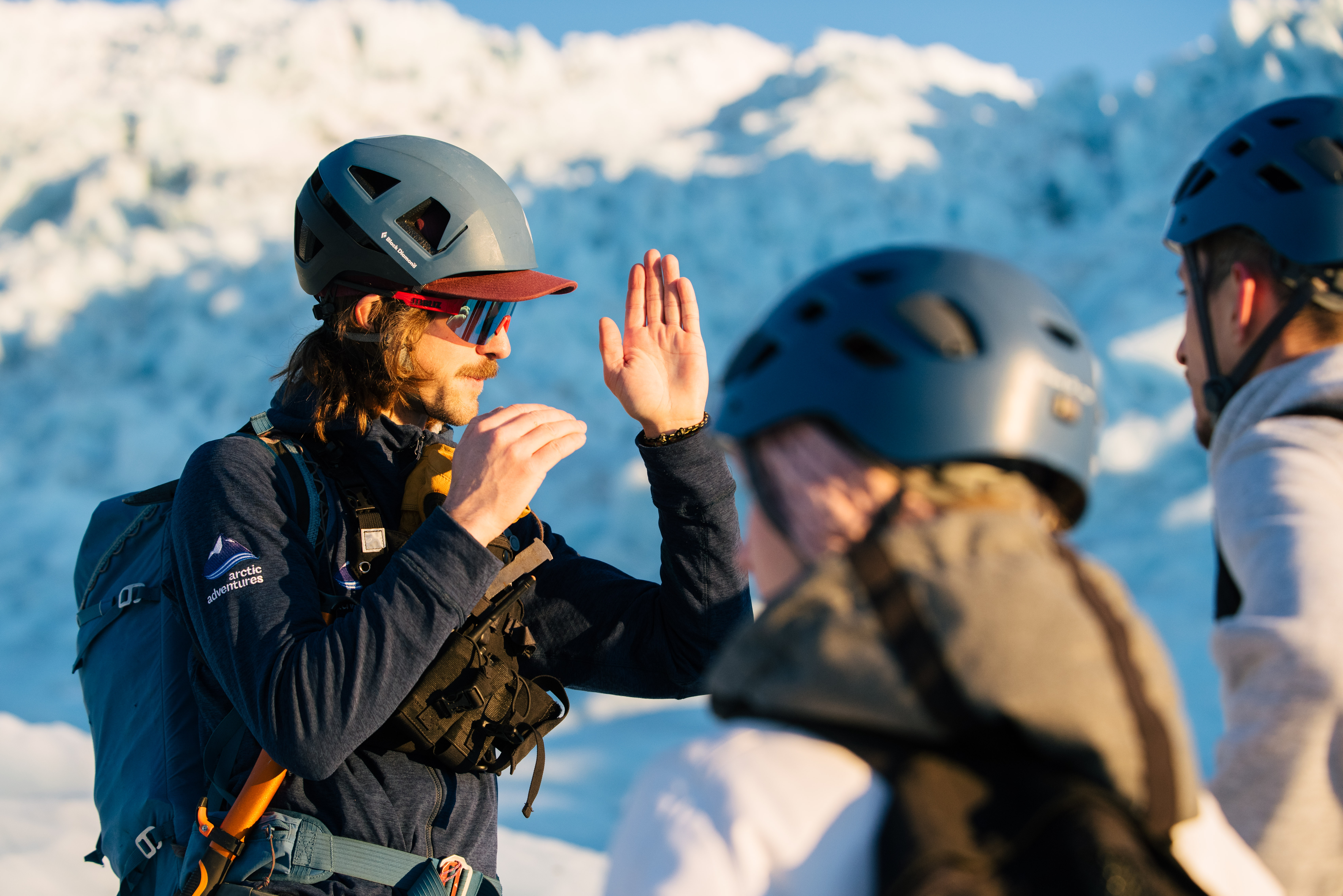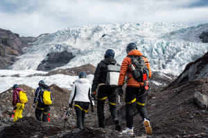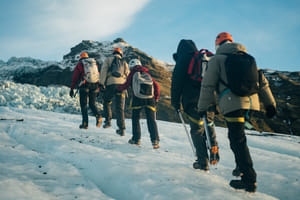 After meeting with your certified glacier guide, you will get ready for the hike, finding the correct size of crampons, helmet and the necessary glacier hiking equipment which is provided for the tour. After a short ride from the base camp you will be greeted by the glacier tongue, where we will begin our journey. We will be walking along a trail which offers great views of the glacial area, interesting glacier formations and more. A camera is highly recommended, as we will be taking stops along the way, specially chosen by your guide where great photos can be captured. After the hike you will be driven back to the base camp where we will finish.