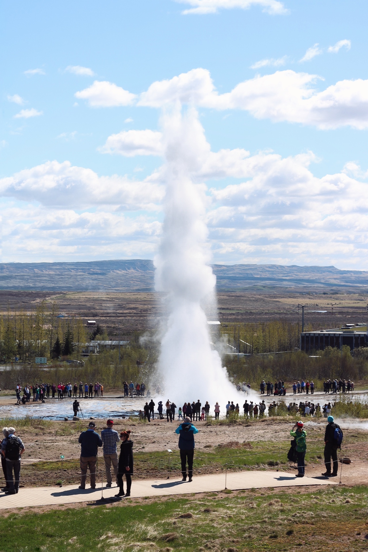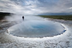 Next we go to Geysir geothermal area is in South Iceland, near Laugarvatn Lake where you have the option of having lunch. The area is named after the biggest, and now mostly dormant, geyser Geysir and all geysers in the world owe their name to it. The biggest attraction today is the active Strokkur, which shoots up a column of water up to 30 metres (98 ft.) into the air every few minutes.