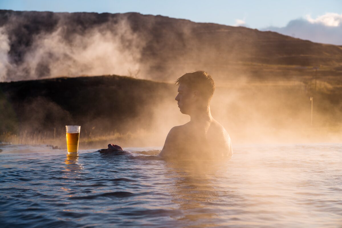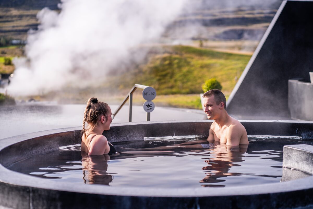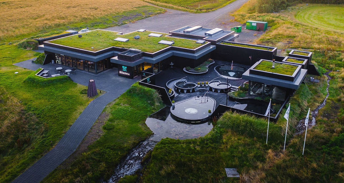 Walk through the spacious blue corridors, step into the built-in chapel, and learn about the glacier’s history. After exploring the world’s largest ice tunnel, let the geothermal waters of Krauma gently warm your body and ease your mind. Slip into the hot tubs, relax in the saunas, or rest in the quiet lounge while taking in the volcanic landscape around you.