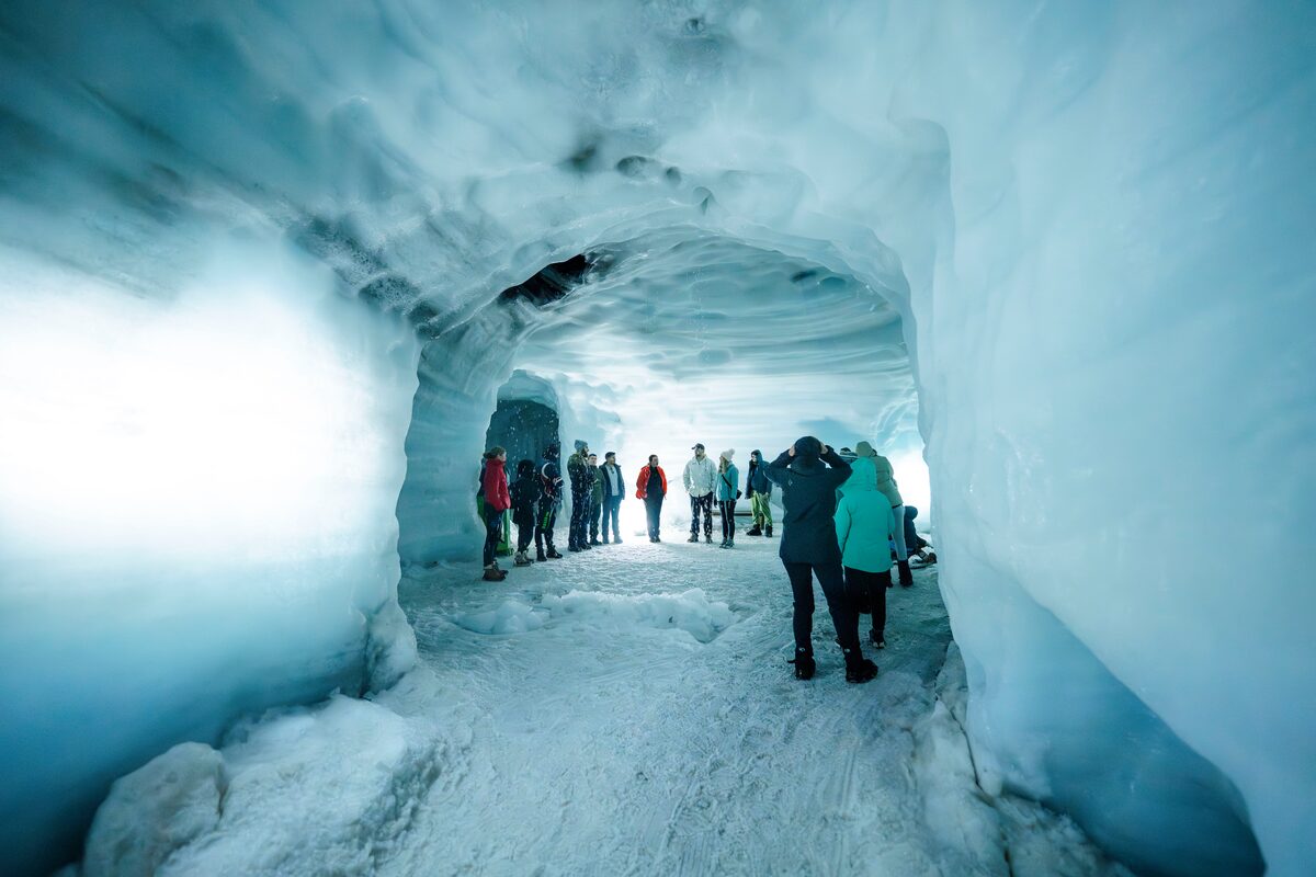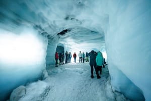 Experience Iceland’s natural contrasts in one day with an icy Into the Glacier adventure inside Langjökull and a hot spring soak at Krauma geothermal spa.