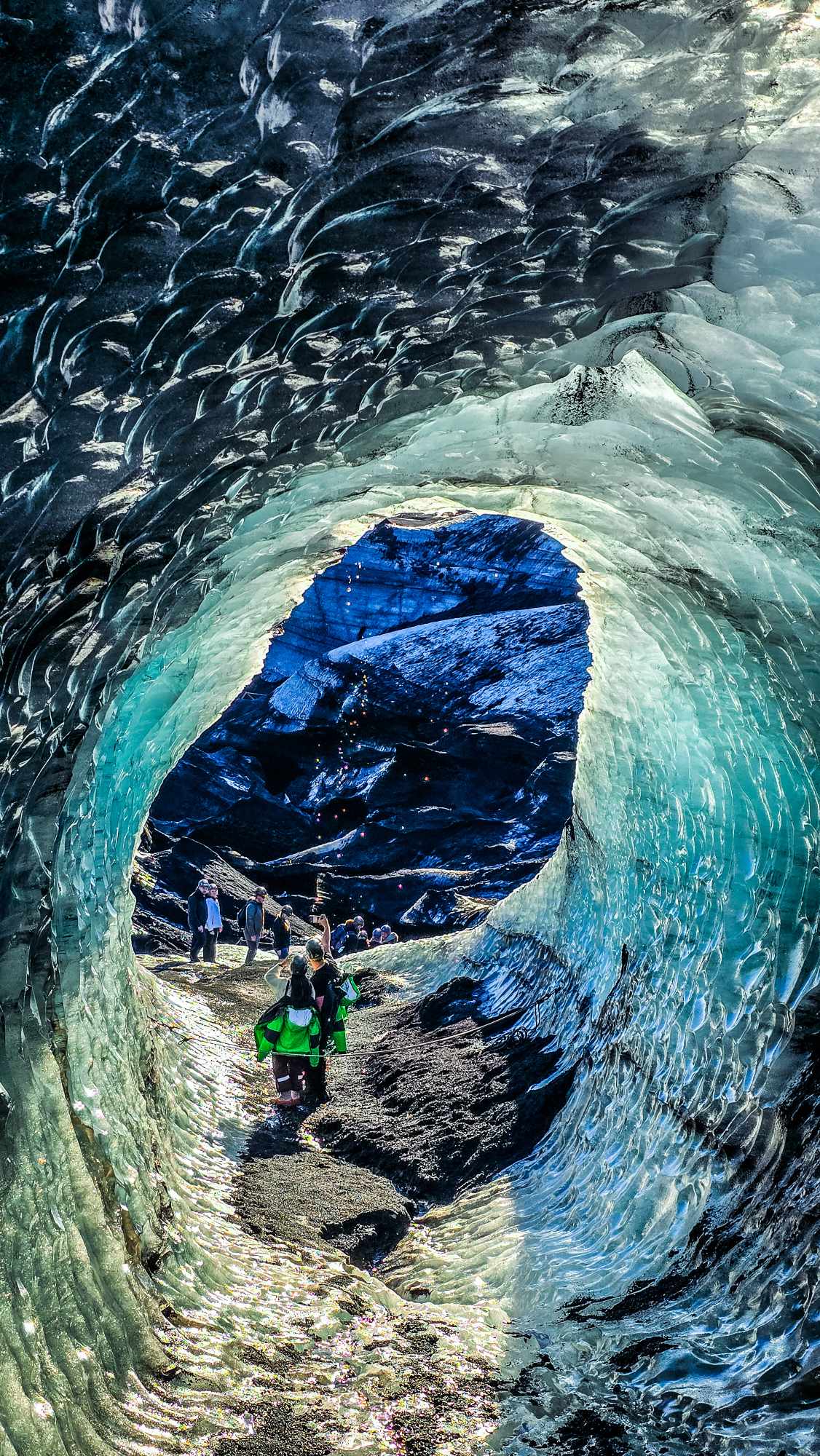 Beautiful layers of different colored ice and volcanic ash unfold from the ice as we come closer to the cave, painting impressive stripes in the glacier. Your guide will tell you all about the history of the glacier, the ice cave and the area around it making the tour educating and exciting all at once.
