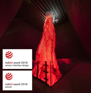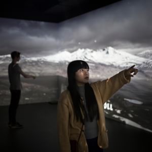 The first experience showcases 100 years of eruption in Iceland. With motion sensors, light walls and sound the experience is amplified.