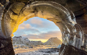 The pinnacle of your adventure awaits at the Katla Ice Cave, nestled at the foot of the Katla glacier. Equipped with crampons and helmets, venture deep into the glacier's heart to discover the mesmerizing Ice Caves.