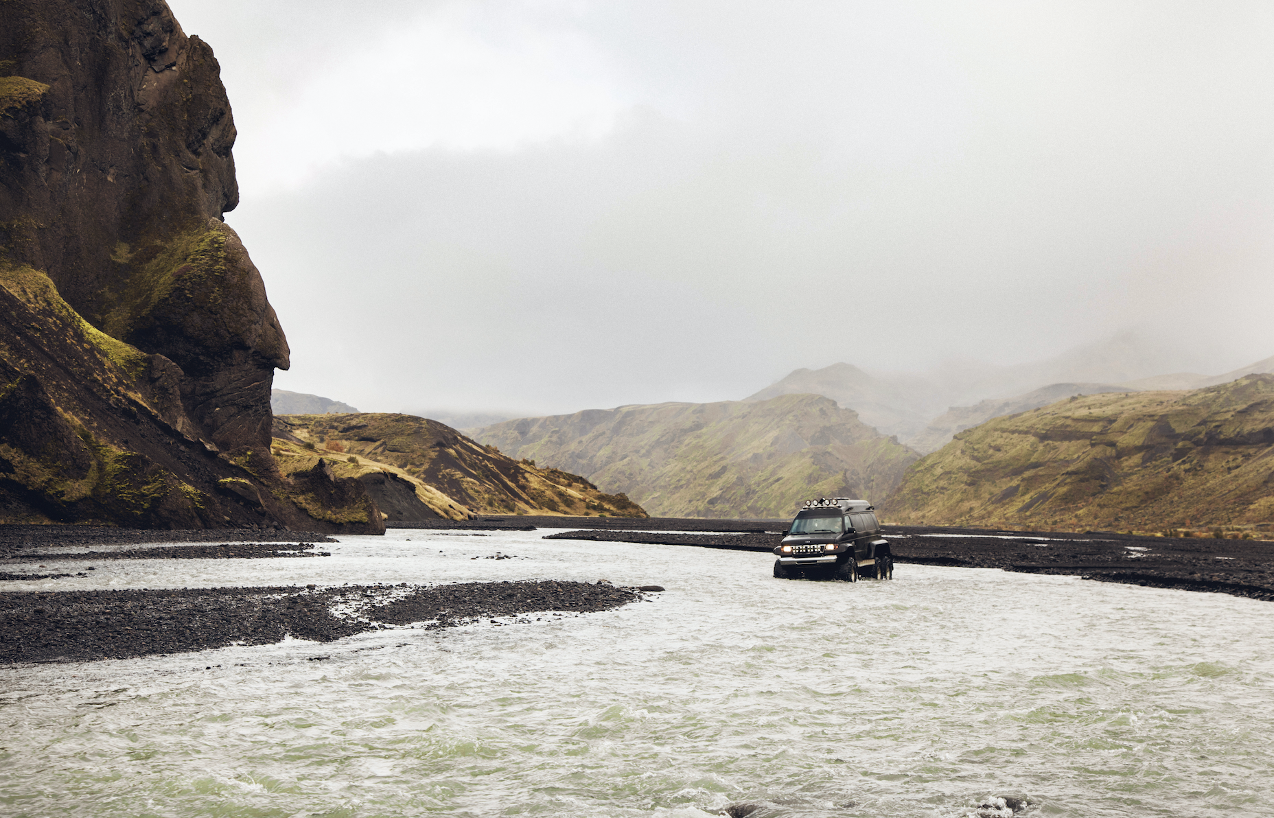 To reach this secluded valley our guide operates a fully equipped 4x4 Super Jeep to get us through the rough highland roads and across various gushing glacial rivers.