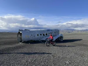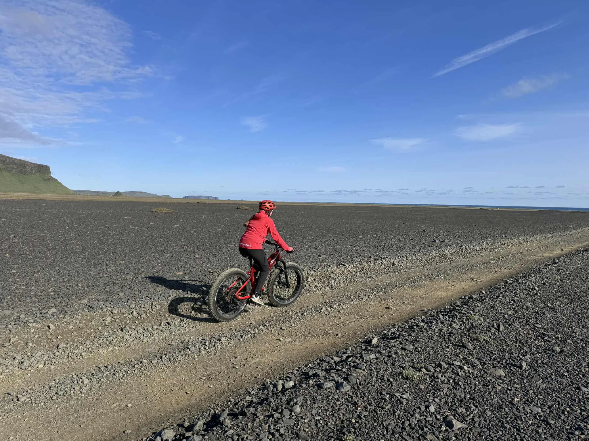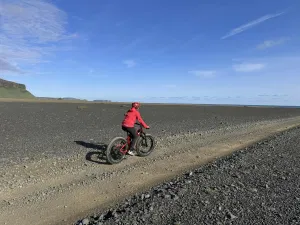 From Reykjavík, we drive towards Mýrdalsjökull glacier, where the volcano Katla is. Set out on a guided electric fat bike adventure exploring the striking black sands of Sólheimasandur. Our modern e-bikes, charged with Iceland’s renewable energy, make this tour both easy and eco-conscious—providing a smooth, emission-free ride for cyclists ages 10 and up.
