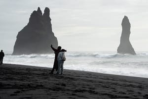 Next, explore the world-famous Reynisfjara Black Sand Beach, known for its volcanic black sands, dramatic basalt columns, and the striking Reynisdrangar sea stacks rising from the ocean. Feel the power of the Atlantic waves as you take in this unforgettable scenery.