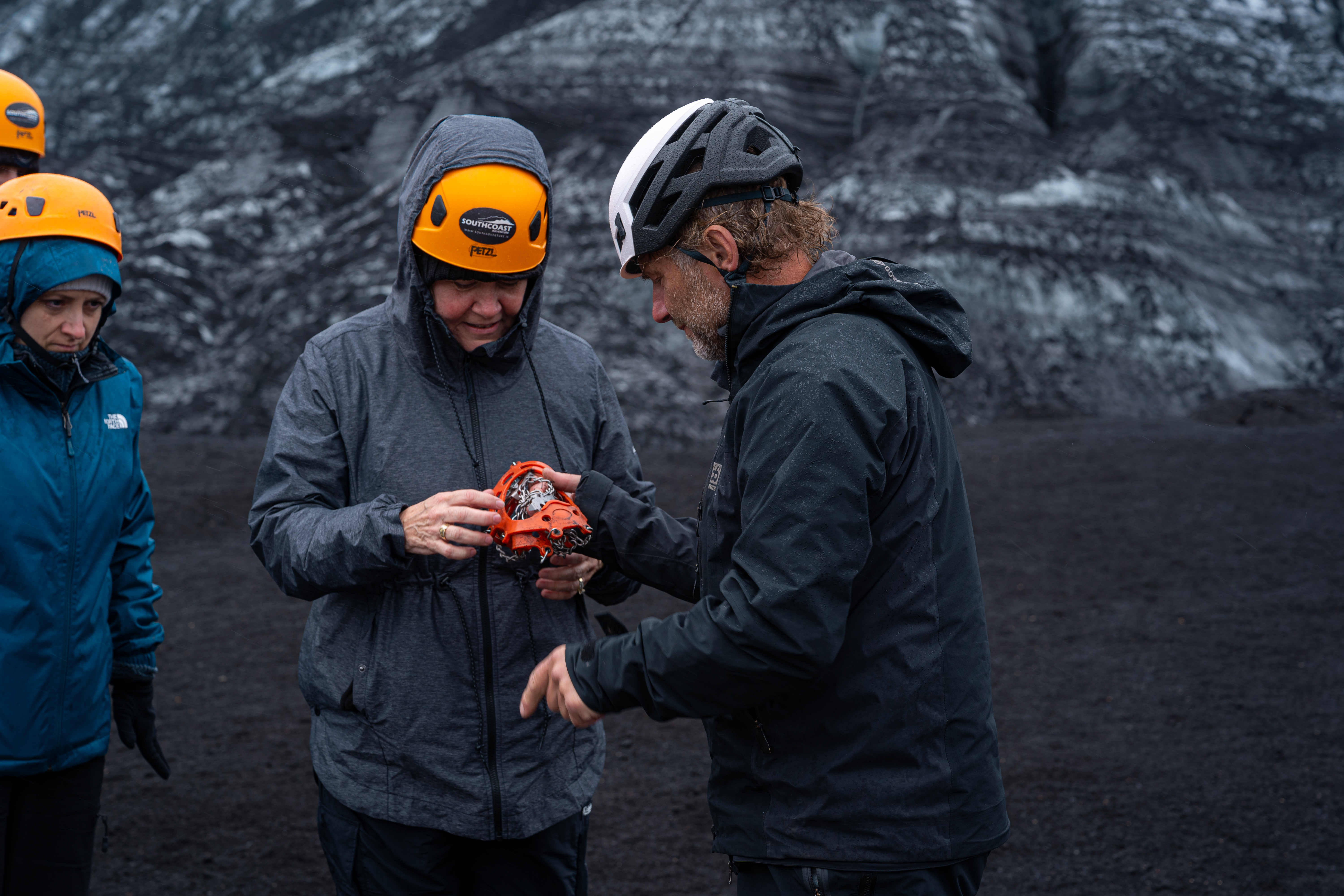 Glacier safety gear (glacier crampons, helmet)